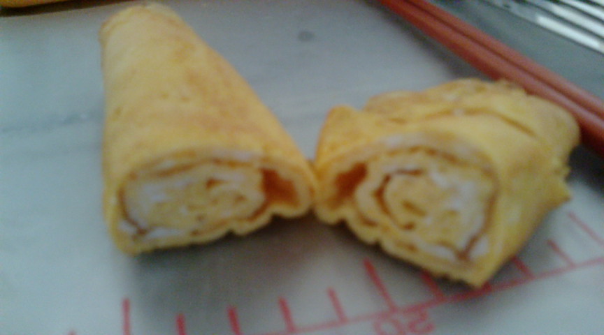 どうにも形がうまくいかなくて結局gdgdになる。あと焦げる。将来は卵焼きのうまい人と結婚しようと心に決めた瞬間でした。